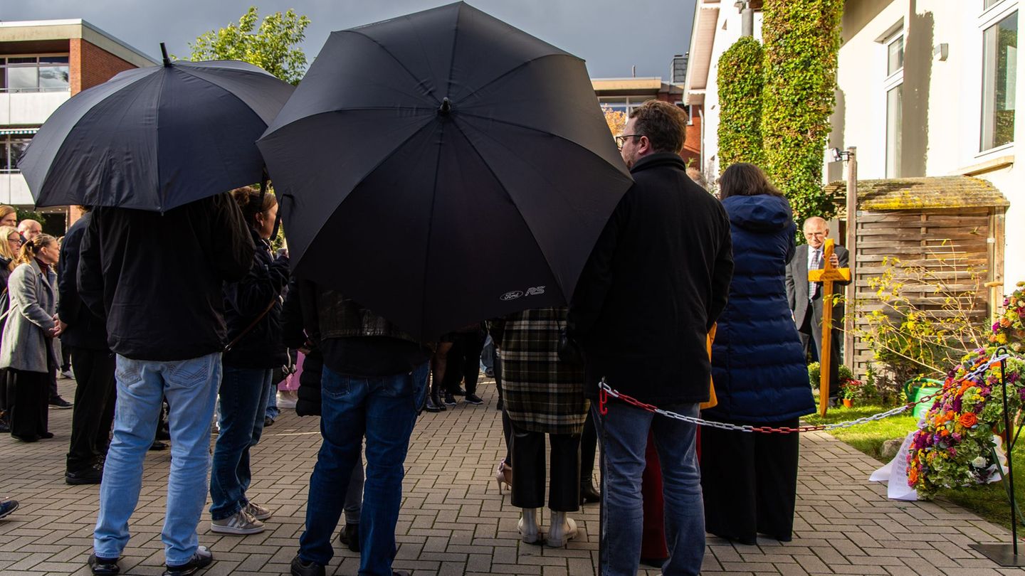 Nach dem Gewaltverbrechen mit vier Toten in Oldenburg haben zahlreiche Menschen an einer Trauerfeier für die Familie teilgenommen. Im Anschluss an den Gottesdienst pflanzten sie vor dem Gemeindehaus eine Forsythie als Zeichen des Gedenkens.